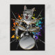 Punk Rockstar Chaton Kitty Chat Batteur Jouant De La Batterie Conception Graphique Carte Cadeau Collection Classique.