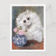 Une carte postale d'art représentant une illustration d'animal par Louis Wain (1860-1939), représentant un charmant chat blanc à poils longs et un vase en porcelaine bleu et blanc rempli de roses roses. Louis Wain était un artiste anglais renommé pour ses nombreux dessins de chats, caractérisés par leurs personnalités mignonnes et leurs grands yeux.