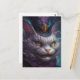 Carte Postale Chat Cheshire effrayant dans un Tophat Violet Vint