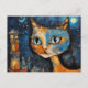 Carte Postale Chat dans la ville à la nuit