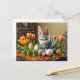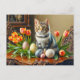 Carte Postale Chat de Pâques avec oeufs et tulipes