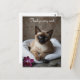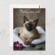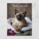"Un grand merci à l'Express avec cette charmante carte postale avec un chat siamois serein qui profite d'un moment spa luxueux. Sa présence douce et raffinée et son ambiance fantaisiste en font le parfait moyen de dire "merci" avec style."