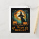 Carte Postale Chat de sorcière noire Halloween et Citrouille de