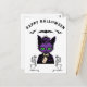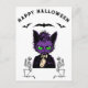 Carte Postale Chat d'Halloween violet avec chauve-souris et sque