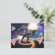 Carte Postale Chat équitation dinosaure licorne dans l'espace