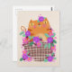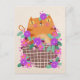 Carte Postale Chat et fleurs orange