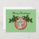 Chat en cercle rouge, décoré de branches saintes. Image sous le texte "Joyeux Noël" sur arrière - plan vert clair. Personnalisez avec votre photo.