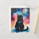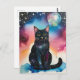 Carte Postale Chat noir dans l'aquarelle de nuit
