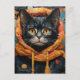 Un joli chat dans une veste noire avec une capuche orange art généré par IA