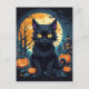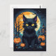 Le mobile d'Halloween. Chat noir avec des citrouilles dans un environnement sombre avec une grande lune. Vecteur Artwork