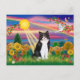 Carte Postale Chat noir et blanc - Soleil d'automne