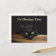 Cette carte postale de rappel de check-up présente notre chatte noire, Ranger, allongé sur une table en bois avec sa tête sur le bord qui vous fait face. Avec les yeux verts pénétrants de Ranger qui vous regardent, ses oreilles inclinées légèrement en arrière et un regard comique d'agacement sur son visage, cette carte postale est parfaite pour toute entreprise qui exige de ses clients un contrôle. Rappelez aux clients de votre clinique que "C'est le temps de contrôle" pour leurs voitures, animaux de compagnie, les dents et de nombreux autres besoins en soins de santé. Remplissez le verso de cette carte postale avec votre nom d'entreprise et toute autre information.