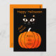 Envoyez à votre famille et à vos amis cette carte d'Halloween avec un chat noir aux yeux immenses derrière un citrouille orange sur un arrière - plan sombre, avec la phrase "Trick ou Treat" et disant "Boo Meow". Très mignon et éffrayant pour Halloween. Vous pouvez modifier le texte et le customiser à votre goût.