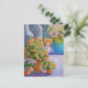 Carte Postale Chat orange avec des pots de fleur