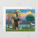 La sainte patronne des animaux, et l'environnement est montré ici avec un chat tabby américain brun à courte haïre brun. La figure de Saint François elle-même a été adaptée du chef-d'oeuvre de Giotto du XIVe siècle et un nouvel arrière - plan a été créé par Jean Fitzgerald