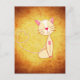 Un dessin d'un mignon chat heureux avec un visage souriant et les yeux fermés. Sa longue queue forme le coeur. Il a des oreilles roses mignonnes et un nez en forme de coeur. L'arrière - plan est un brun doré terreux avec un centre jaune défraîchi.