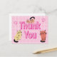 Dites Merci avec cette carte postale adorable. Un fond rose de style rétro cool avec un motif de grille blanche par-dessus. Au centre, les mots Merci sont écrits en lettres roses avec une ombre portée rose vif pour les faire ressortir. À gauche, à droite et au-dessus des mots se trouvent des chats doodle mignons. et des empreintes de pattes roses en arrière-plan pour compléter le look.