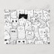 Carte Postale Chats drôles de gribouillis noirs et blancs