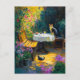 Carte Postale Chats impressionnistes Jouer dans le coin jardin