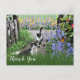 Cette carte postale de remerciement présente des chats Tuxedo noirs et blancs dans un jardin fleuri. Susang6 a créé cette carte postale de chat à partir d'une photo puis a ajouté des illustrations d'un autre chat, herbe, iris, colibri, et un papillon monarque comme superposition. Tous ont été compressés pour créer un collage d'art design qui ressemble à une photo. Le Merci de texte est en bas à gauche, vous pouvez modifier le texte pour ajouter vos propres mots ou le supprimer Une carte postale de remerciement comme celle-ci ravira un amoureux des chats.