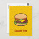 Illustration de dessin animé Cheeseburger. Les aliments indésirables entourent les icônes jaune motif arrière - plan. Texte personnalisé.