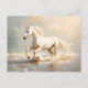 Carte Postale Cheval Blanc courir sur la plage