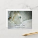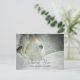 Carte de remerciement avec une photographie sereine représentant un beau cheval blanc avec un petit oiseau posé sur son encolure. Une chute de neige hivernale magique donne à l'image une qualité mystique merveilleuse.