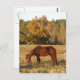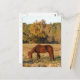 Carte Postale Cheval Brown dans le champ d'arbre jaune