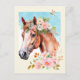Carte Postale Cheval et fleurs à l'aquarelle