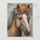 Carte Postale Cheval mignon dans une couronne florale