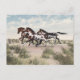 Cette carte postale présente une œuvre d'art originale représentant trois chevaux de peinture galopant à travers un paysage désertique du Sud-Ouest, créée dans Vue par l'artiste numérique Jayne Wilson.