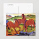 Carte postale d'art avec Red Horses (1911) de Franz Marc (1880-1916). Marc était un artiste allemand du mouvement expressionniste, il a fondé le groupe d'artistes appelé le Blue Rider (Der Blaue Reiter). Son travail se caractérise par des couleurs primaires vives et des animaux cubes. Ce tableau représente trois chevaux rouges sur un paysage vallonné vert.