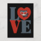 Découvrez Chibi Catwoman à l'intérieur d'un coeur rouge qui représente le "O" dans ce logo empilé "LOVE".