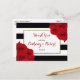 La collection chic moderne de luxe mariage de la collection dispose d'un arrière - plan classique rayé noir et blanc accentué par de belles roses rouges en rubis et un faux cadre en feuille d'or. Ces cartes postales sont faciles à personnaliser et seront le parfait merci pour tout mariage, douche nuptiale, fête d'anniversaire, fête de fiançailles ou toute autre occasion spéciale.