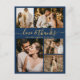 Elégant, minimaliste or et Mariage de script marine 5 Photo Collage Merci Postcard. Modèle carte de remerciements mariage moderne avec cinq (5) photos à l'avant et une (1) photo à l'arrière. Avec le texte "Amour et merci" dans une tourbillonnant police de script de typographie en or sur bleu marine couleur arrière - plan. Ajoutez votre nom, vos photos et votre message de remerciement. Si vous préférez écrire votre note à la main, supprimez simplement l'exemple de texte pour gagner de l'espace. Veuillez me contacter si vous avez besoin d'aide pour cette conception.