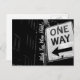 Carte postale représentant un panneau de rue à sens unique à Chicago. Noir et blanc