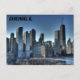 Une belle vue sur la ligne d'horizon de Chicago, une carte postale à envoyer à n'importe qui. le dos dit - Roller skates, cadre en acier gratter, chemin de fer surélevé, jacks de craqueurs, zipper, enveloppe de fenêtre, hôtesse Twinkie, jeu de pinball et peinture spray ont été inventés à Chicago.