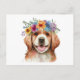 Carte Postale Chien Retriever doré mignon avec des fleurs