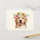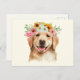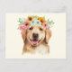 Carte Postale Chien Retriever Golden Mignon avec des Fleurs
