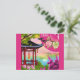 N'importe qui aimerait recevoir cette carte postale de voyage chinoise avec une aquarelle illustrant une pagode et un ventilateur rose en Chine !