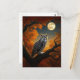 Un grand hibou à cornes dans un arbre en automne sous la lumière d'une pleine lune.