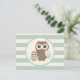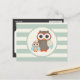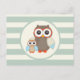Carte Postale Chouettes en bois mignonnes; Vert Sage clair