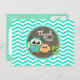 Carte Postale Chouettes mignonnes ; Aqua Green Chevron