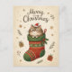 Carte Postale Christmas Cat in Stocking