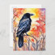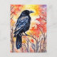 Carte Postale Chute Corbeau Aquarelle Automne Feuilles Oiseau No