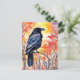 Un Corbeau est perché parmi les feuilles d'automne dans cette aquarelle d'automne désirable. En noir et orange traditionnel, cette carte postale artistique est très appréciable pour Halloween, scrapbooking, envoyer une note de saison, ou simplement pour collectionner en mini-tirage d'art.
