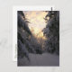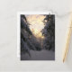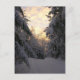 Carte postale ciel d'hiver. L'hiver dans le New Hampshire montre des arbres enneigés le long d'une route enneigée et le soleil sur les nuages.