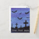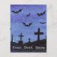 Un paysage à l'aquarelle de chauves-souris en vol au-dessus d'un cimetière la nuit orne cette carte postale personnalisable !