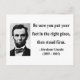 "Assurez-vous de mettre vos pieds au bon endroit, puis tenez-vous ferme." - Abraham Lincoln
