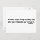Nous ne voyons pas les choses telles qu'elles sont ; nous voyons les choses telles que nous sommes. —Anais Nin